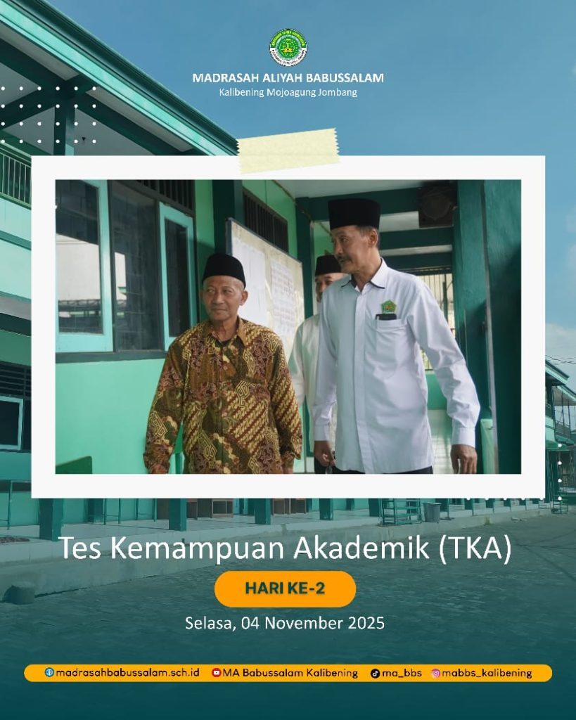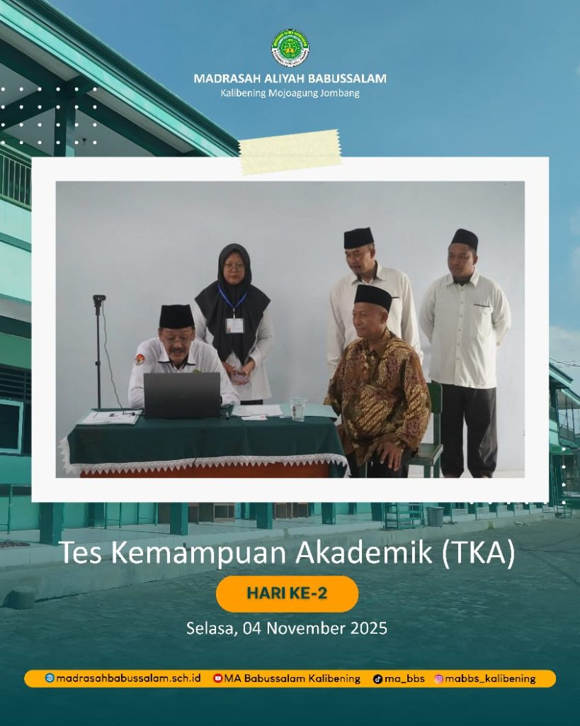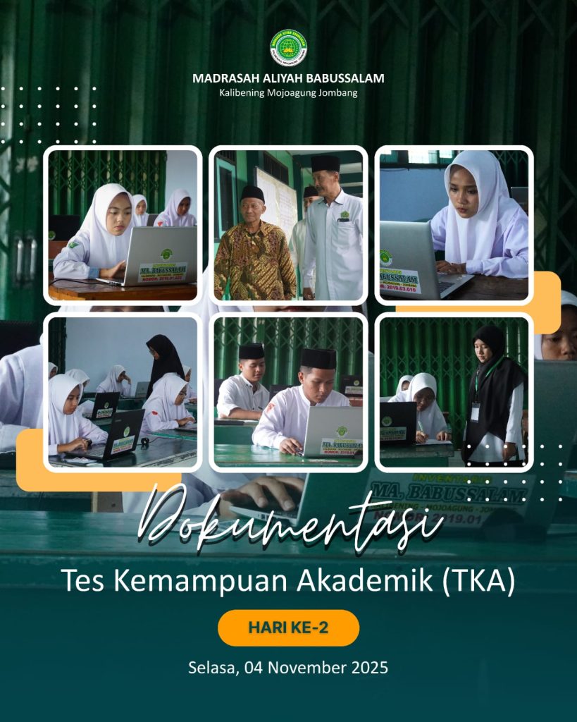 MABBS– Jombang, (04/11) Selasa, 04 November 2025 merupakan hari ke-2 pelaksanaan Tes Kemampuan Akademik (TKA) kelas XII. Tes ini menjadi tolak ukur kompetensi siswa yang akan melanjutkan ke jenjang perguruan tinggi.